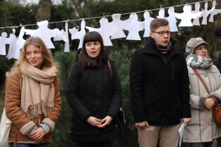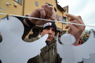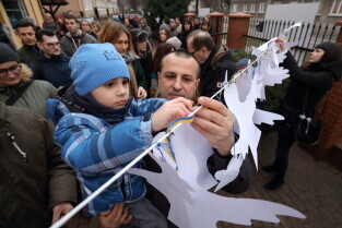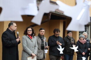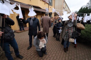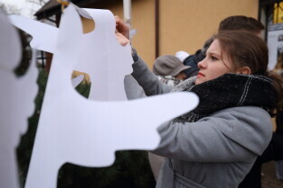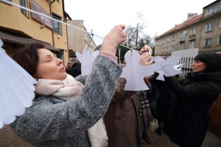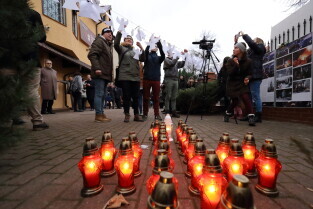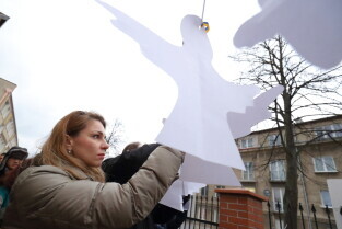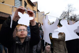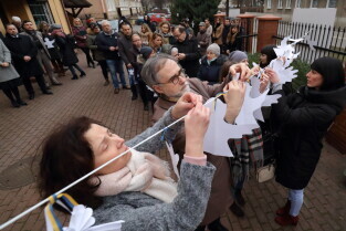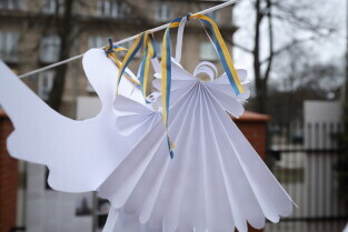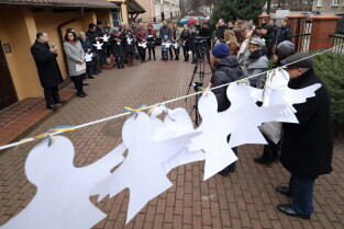 Gdańsk. Piąta rocznica tragicznych wydarzeń na Majdanie. Na terenie Konsulatu w Gdańsku, odbyła się akcja „Anioły Pamięci” ku czci bohaterów „Niebiańskiej Setki” którzy zostali zabici.