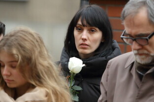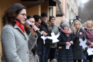 Gdańsk. Piąta rocznica tragicznych wydarzeń na Majdanie. Na terenie Konsulatu w Gdańsku, odbyła się akcja „Anioły Pamięci” ku czci bohaterów „Niebiańskiej Setki” którzy zostali zabici. Nz. Pełniąca obowiązki Prezydenta Gdańska Aleksandra Dulkiewicz.