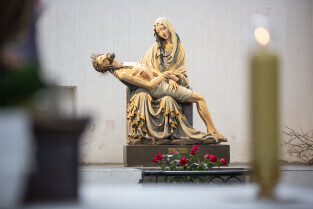 Gdańsk. Elementy wnętrza Bazyliki Mariackiej. Nz. Pieta