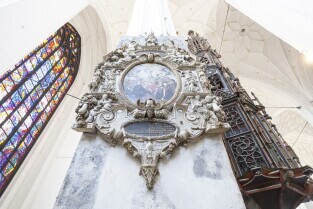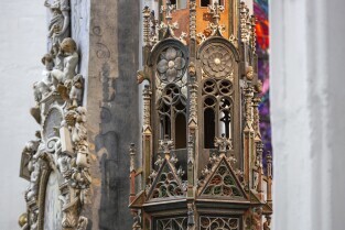 Gdańsk. Wnętrza Bazyliki Mariackiej Wniebowzięcia Najświętszej Maryi Panny w Gdańsku. Nz. fragment Sakramentarium