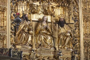 Gdańsk. Elementy wnętrza Bazyliki Mariackiej. Nz. Grupa Ukrzyżowania