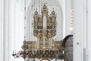 Gdańsk. Wnętrza Bazyliki Mariackiej Wniebowzięcia Najświętszej Maryi Panny w Gdańsku. Nz. Organy