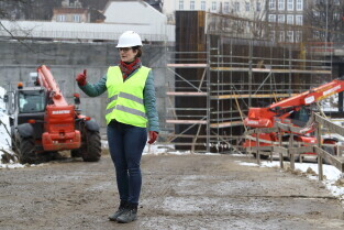 Gdańsk. Briefing prasowy-informacja o postępach na budowie wiaduktu Biskupia Górka. Nz. Aleksandra Dulkiewicz pełniąca obowiązki prezydenta Gdańska.