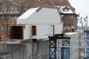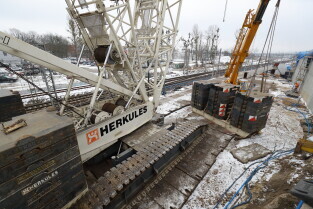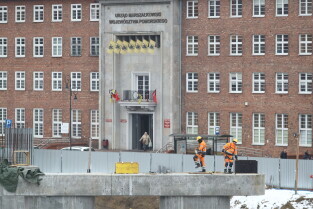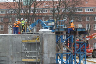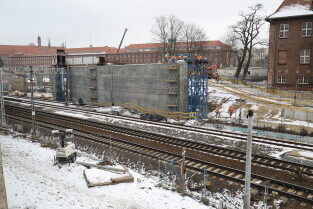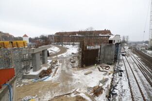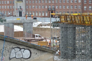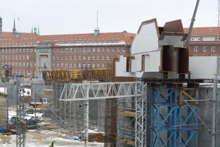 Gdańsk. Briefing prasowy-informacja o postępach na budowie wiaduktu Biskupia Górka.