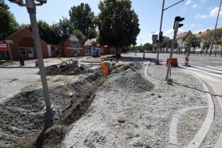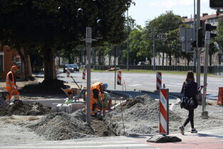 Gdańsk. Budowa drogi rowerowej przy al. Legionów. Nz. Skrzyżowanie Al. Legionów z Kościuszki.