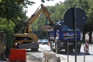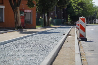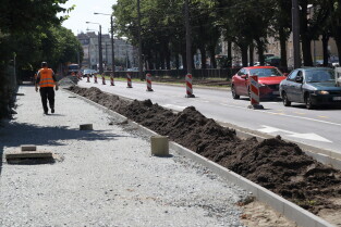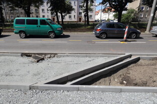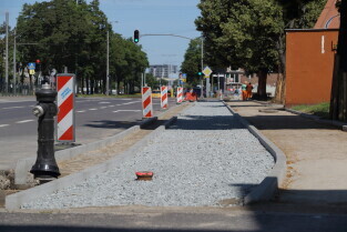 Gdańsk. Budowa drogi rowerowej przy al. Legionów.