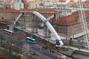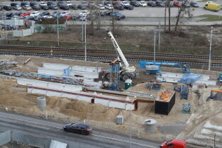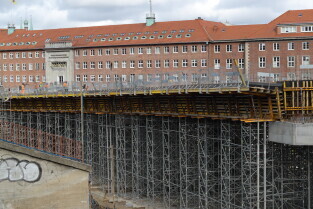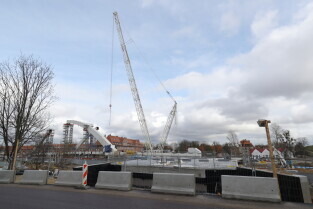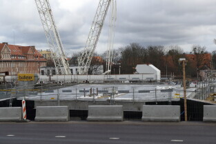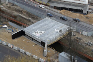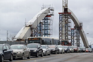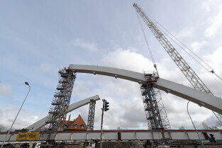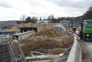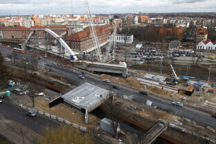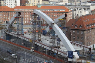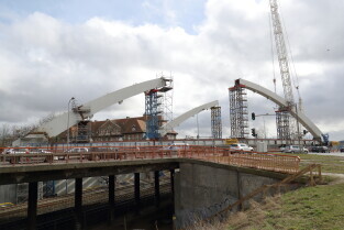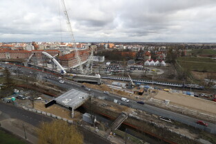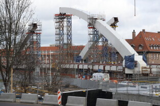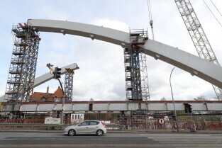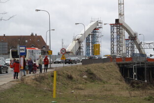Gdańsk. Budowa wiaduktu Biskupia Górka.
