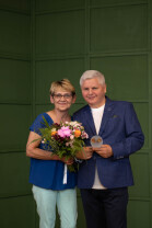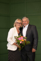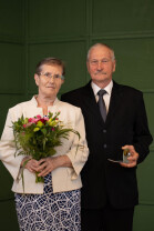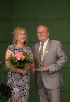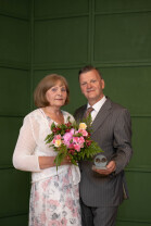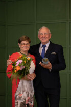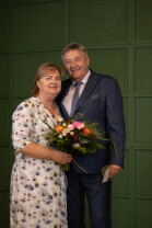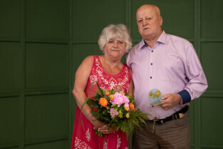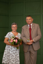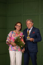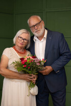 Gdańsk, Filharmonia Bałtycka. Bursztynowe Gody, uroczystość 44. rocznicy zawarcia związku małżeńskiego. Dyplomy i bursztynowe upominki jubilatom wręczała prezydent Gdańska Aleksandra Dulkiewicz, Grażyna Gorczyca kierownik USC, Grzegorz Graefling z-ca kierownika USC i Emilia Kohut wiceprezes Krajowej Izby Gospodarczej Bursztynu. Wieczór uświetnił koncert Alicji Majewskiej i Włodzimierza Korcza.