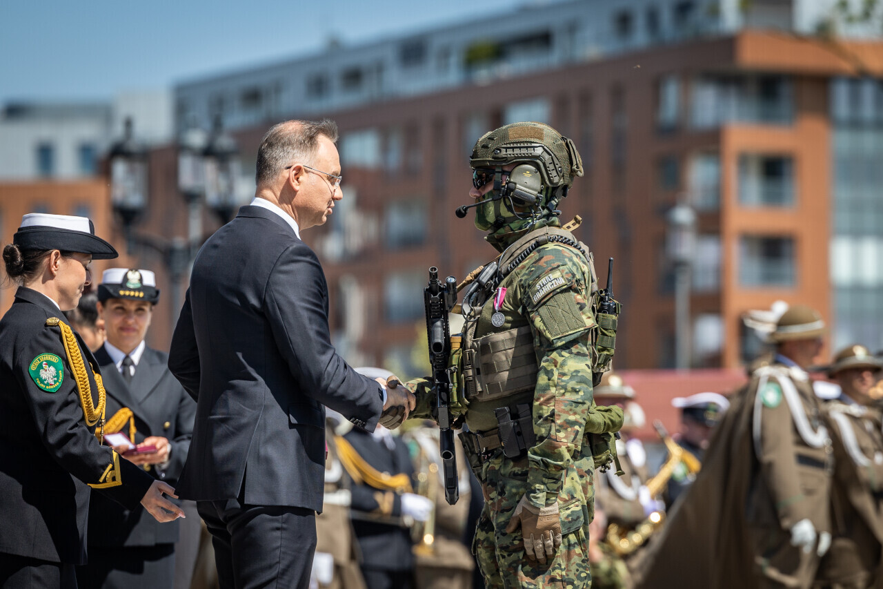Gdańsk. Centralne obchody 33. rocznicy powołania Straży Granicznej z udziałem prezydenta RP Andrzeja Dudy na Ołowiance.