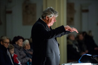 Gdańsk, Sanktuarium Matki Bożej Fatimskiej. Charytatywny Koncert Bożonarodzeniowy w wykonaniu Polskiego Chóru Kameralnego. Nz. Jan Łukaszewski, Dyrygent, dyrektor naczelny i artystyczny Polskiego Chóru Kameralnego