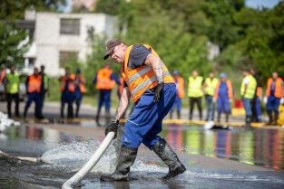 Cwiczenia przeciwpowodziowe na ulicy Cedrowej
