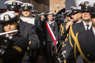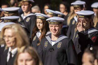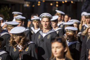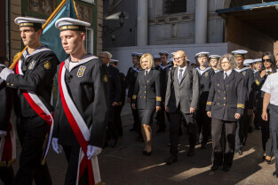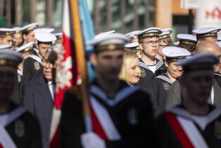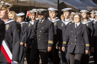 Gdańsk. Uczniowie oraz nauczyciele Zespołu Szkół Morskich przemaszerowali ul.Długą i Długim Targiem.