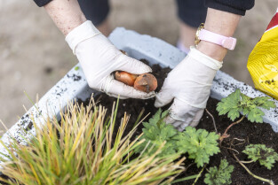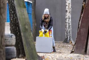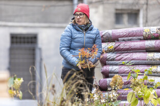 Gdańsk. W ramach rewitalizacji Biskupiej Górki BRG prowadzi działania społeczne, w tym tzw. działania podwórkowe, polegające na sprzątaniu, grodzeniu i sadzeniu roślinności. Nz. Mieszkanka pobliskiej kamienicy, pani Sabina