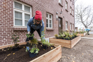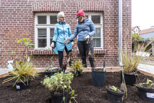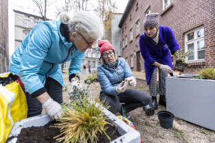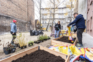 Gdańsk. W ramach rewitalizacji Biskupiej Górki BRG prowadzi działania społeczne, w tym tzw. działania podwórkowe, polegające na sprzątaniu, grodzeniu i sadzeniu roślinności.
