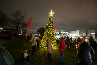 Gdańsk. Prezydent Aleksandra Dulkiewicz oraz radni miasta Jolanta Banach i Maxymilian Kieturakis wzięli udział w dzielnicowej Choince na Biskupiej Górce