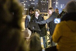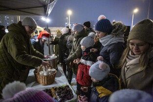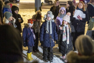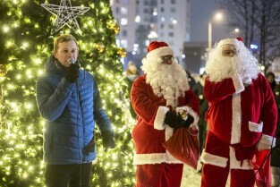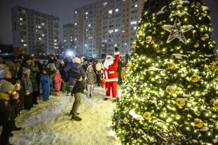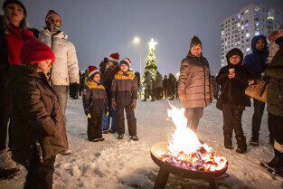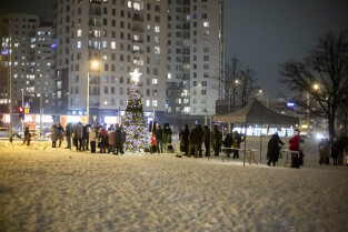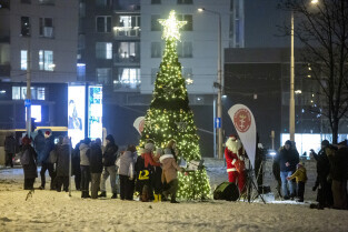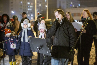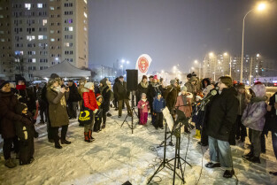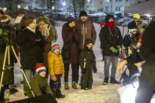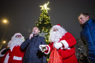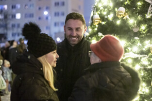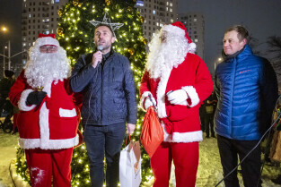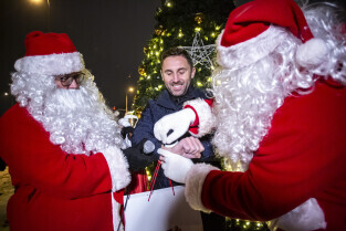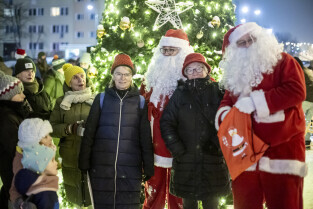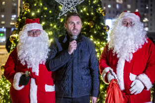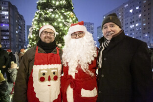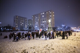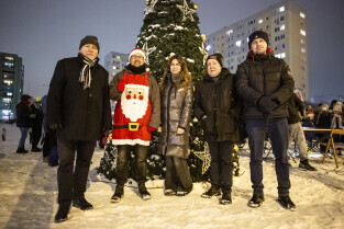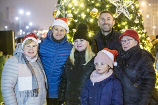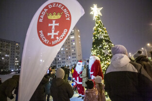 Dzielnicowa choinka w Pieckach-Migowie, z udziałem Piotra Borawskiego, Z-cy Prezydenta ds. przedsiębiorczości i ochrony klimatu, radnych Piotra Dzika, Piotra Gierszewskiego, Michała Hajduka, Beaty Jankowiak i Przemysława Malaka.