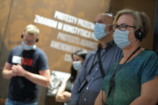 Gdańsk. Święto Wolności i Demokracji. 40-lecie Porozumień Sierpniowych. Studio S. Nz. Marek Ponikowski, Barbara Szczepuła, Marek Wałuszko