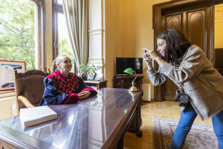 Gdańsk. Dzień Otwarty Rady Miasta. Nz. Po sali obrad rady oprowadzają radni Kamila Błaszczyk i Piotr Gierszewski