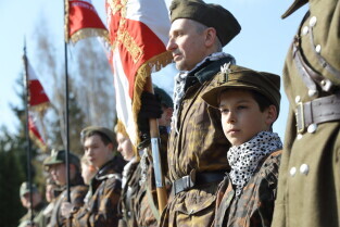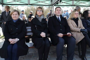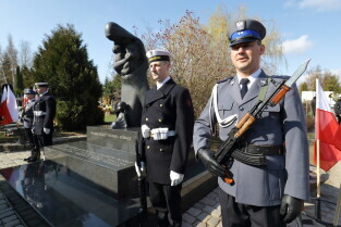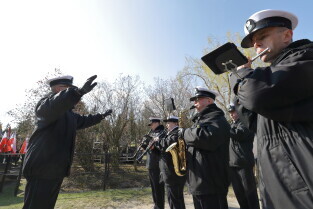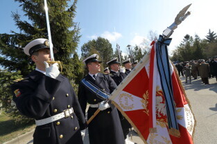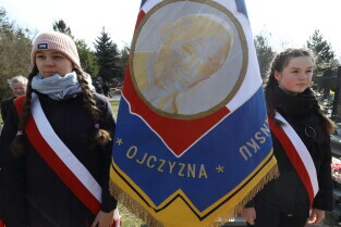 Gdańsk, Cmentarz Łostowicki, u stóp pomnika Golgoty Wschodu. Obchody Dnia Pamięci Ofiar Zbrodni Katyńskiej oraz 79. Rocznicy II masowej zsyłki Polaków na Sybir.