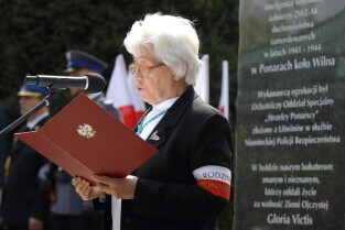 Gdańsk. Dzień Pamięci Polaków zamordowanych w latach 1941-1944 w Ponarach koło Wilna. Nz. Prezes Stowarzyszenia Rodzina Ponarska, Maria Wieloch.