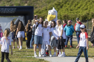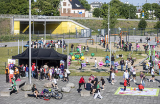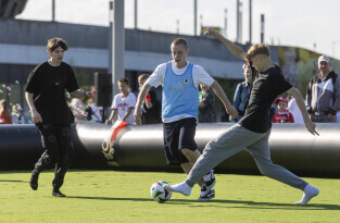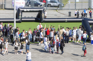Gdańsk. Z okazji meczu reprezentacji Polski w piłce nożnej kobiet, obok stadionu Polsat Plus Arena odbył się festyn piłkarski dla dzieci pod hasłem "Festiwal Piłkarski dla Dziewczyn".