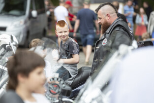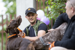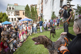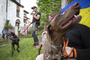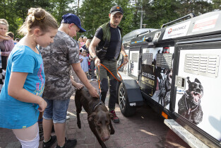 Gdańsk. Festyn Parafialny na Strzyży zorganizowany na terenie Sanktuarium Miłosierdzia Bożego Pw. Zmartwychwstania Pańskiego. Nz. Igor Tracz, mistrza świata psich zaprzęgów.