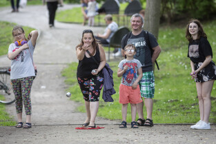 Gdańsk. W parku Oruńskim odbył się doroczny Festyn Rodzinny. Nz. Rodzinna gra w Boule.