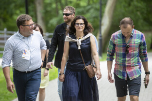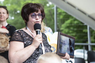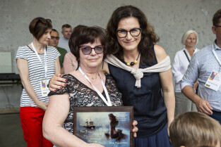 Gdańsk. W parku Oruńskim odbył się doroczny Festyn Rodzinny. Nz. Teresa Kuśmierska laureatka nagrody Oruńskiej Syrenki