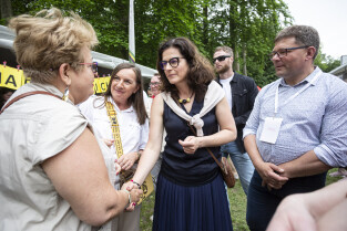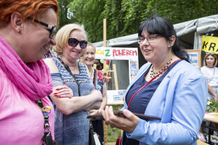 Gdańsk. W parku Oruńskim odbył się doroczny Festyn Rodzinny. Nz. Agnineszka Bartków laureatka nagrody Oruńskiej Syrenki