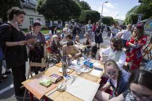 Gdańsk. Po raz 11 mieszkańcy oliwy bawili się na festynie Viva Oliva! odbywającym się co roku na ulicy Opata Jacka Rybickiego. Nz. Plener malarski zorganizowany prywatnie przez grupę seniorek z Oliwy