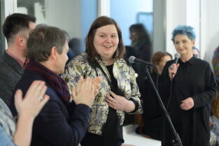 Gdańsk. Finisaż 5. edycji Gdańskiego Biennale Sztuki. Spośród artystów, którzy zakwalifikowali się na wystawę został wyłoniony zwycięzca Biennale oraz laureat Nagrody Publiczności. Nz. Agnieszka Piasecka.