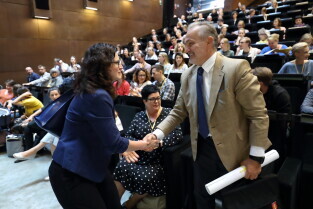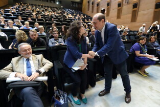 Gdańsk, Europejskie Centrum Solidarności. Forum Praktyków Partycypacji. Nz. Prezydent Gdyni Wojciech Szczurek. Nz. Prezydent Gdańska Aleksandra Dulkiewicz i Prezydent Gdyni Wojciech Szczurek.