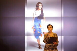 Gdańsk, Hevelianum. Gala finałowa „Kreatywnych w Modzie”. Nz. Iwona Wirkus-Romanowska, dyrektor Zespołu Szkół Kreowania Wizerunku.