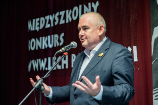 Gdańsk, SP85. Gala konkursu międzyszkolnego im. Lecha Bądkowskiego i otwarcie pracowni sensorycznych. Nz. wiceprezydent Gdańska Piotr Kowalczuk