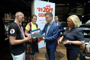 Gdańsk, Europejskie Centrum Solidarności. Gala rozdania nagród konkursu "Weź zagłosuj". Nz. Wiceprezydent Gdańska Piotr Kowalczuk.