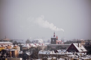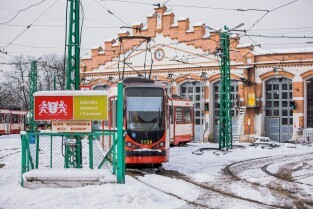 Gdańsk, Nowy Port. Zimowy Gdańsk. Nz. Zajezdnia tramwajowa