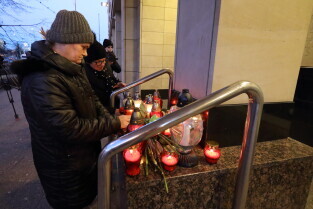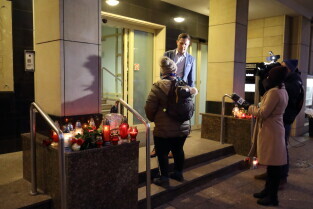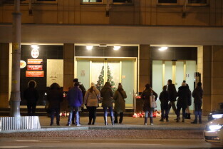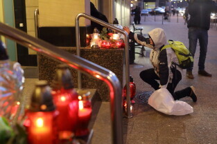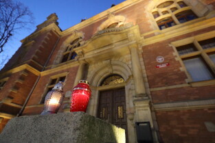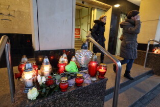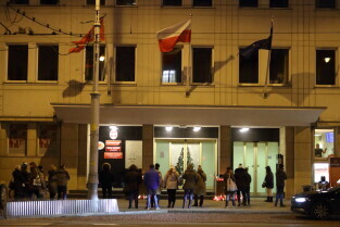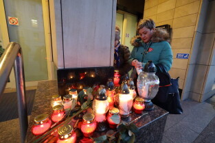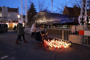 Gdańsk. Gdańsk w żałobie po tragicznej śmierci Pawła Adamowicza. Nz. Przed Urzędem Miasta.