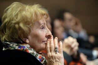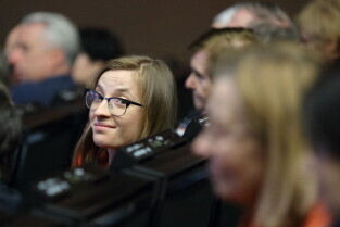 Gdańsk. Gdańska Debata Obywatelska. Na temat „Czy kompromis polityczny prowadzi do pojednania. Przypadek Polski (1989-2019) i Hiszpanii (1976-2019)” Profesor Aleksander Hall. Nz. Katarzyna Hall.
