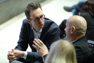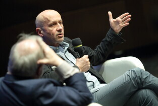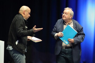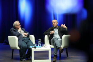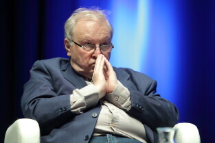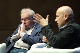 Gdańsk. Gdańska Debata Obywatelska. Na temat „Czy kompromis polityczny prowadzi do pojednania. Przypadek Polski (1989-2019) i Hiszpanii (1976-2019)” Profesor Aleksander Hall. Nz. Dziennikarz Maciej Stasiński.