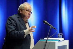 Gdańsk. Gdańska Debata Obywatelska. Na temat „Czy kompromis polityczny prowadzi do pojednania. Przypadek Polski (1989-2019) i Hiszpanii (1976-2019)” Profesor Aleksander Hall. Nz. Prof. Aleksander Hall.