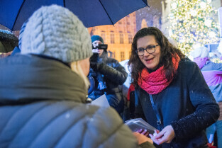Gdańsk, Długi Targ. Gdańska Wigilia. Nz. Wiceprezydent Gdańska Aleksandra Dulkiewicz