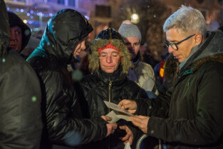 Gdańsk, Długi Targ. Gdańska Wigilia. Nz. Radny Andrzej Kowalczys