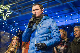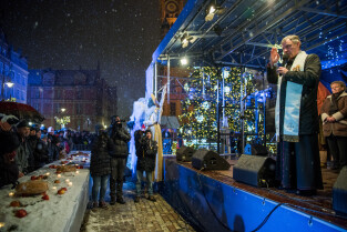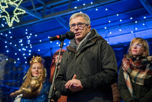 Gdańsk, Długi Targ. Gdańska Wigilia. Nz. Wiceprezydent Gdańska Piotr Grzelak