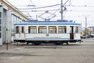 Gdańsk. W zajezdni tramwajowej na ul. Wita Stwosza odbyła się prezentacja odrestaurowanego tramwaju DWF Tw245 "Bergmann" z 1927 roku.