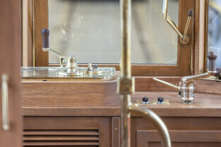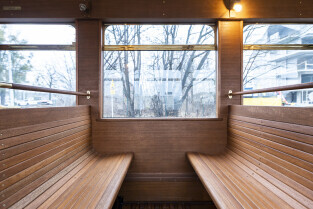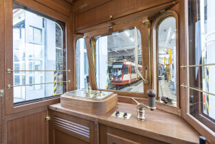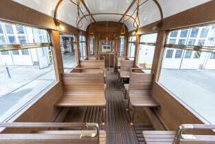 Gdańsk. W zajezdni tramwajowej na ul. Wita Stwosza odbyła się prezentacja odrestaurowanego tramwaju DWF Tw245 "Bergmann" z 1927 roku. Nz. Wnętrze historycznego pojazdu zostało pieczołowicie odrestaurowane zgodnie.
