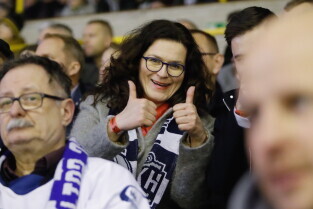 Gdańsk. Mecz hokeja na lodzie MH Automatyka - GKS Tychy. Nz. Pełniąca obowiązki Prezydenta Gdańska Aleksandra Dulkiewicz.