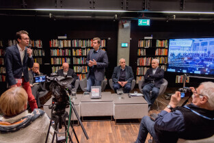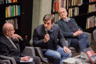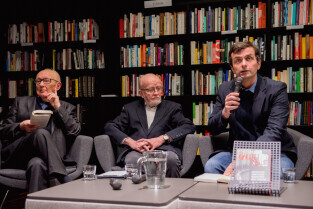 Gdańsk. ECS Historia 4. Wokół Okrągłego Stołu. Nz. od l. : prof. Janusz Reykowski, prof. Janusz Grzelak, dr hab. Adam Leszczyński