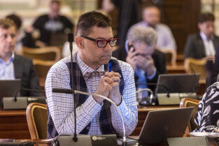 Gdańsk. III Sesja Rady Miasta. Nz. radny Marcin Makowski