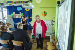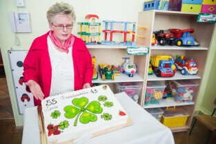 Gdańsk, ul. mjr. M. Słabego. Jubileusz 55-lecia przedszkola nr 43 Koniczynka. Nz. radna Teresa Wasilewska