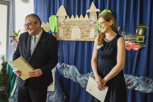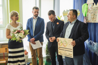 Gdańsk, ul. mjr. M. Słabego. Jubileusz 55-lecia przedszkola nr 43 Koniczynka. Nz. wiceprezydent Gdańska Piotr Kowalczuk